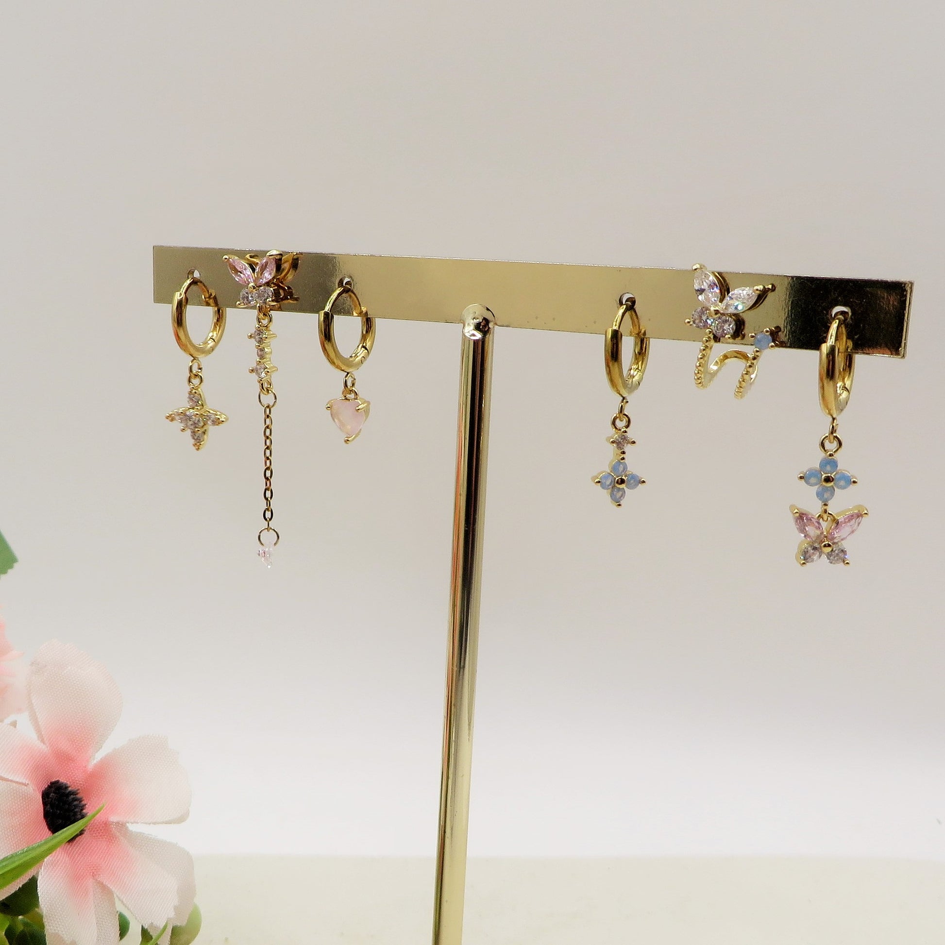BUTTERFLY Set 6 orecchini PASTEL RAINBOW - ACCIAIO INOSSIDABILE - 6 Orecchini pendenti con cubic zirconia