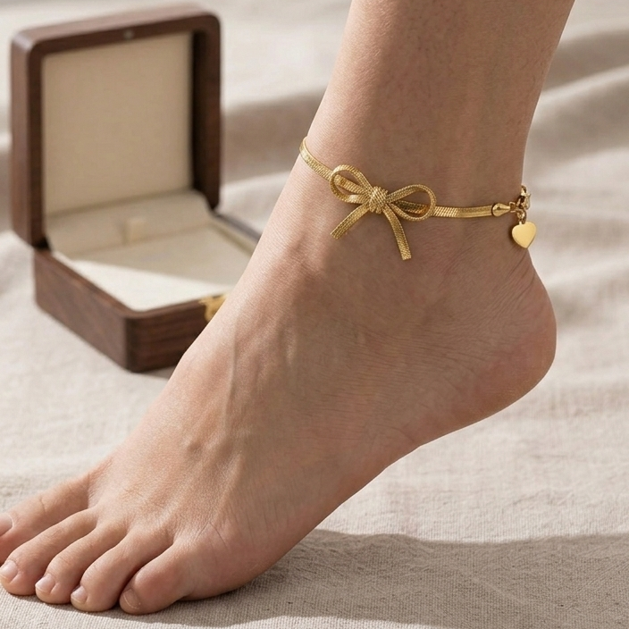 ELEONOR BOW ~ Cavigliera in ACCIAIO INOSSIDABILE catena snake piatta