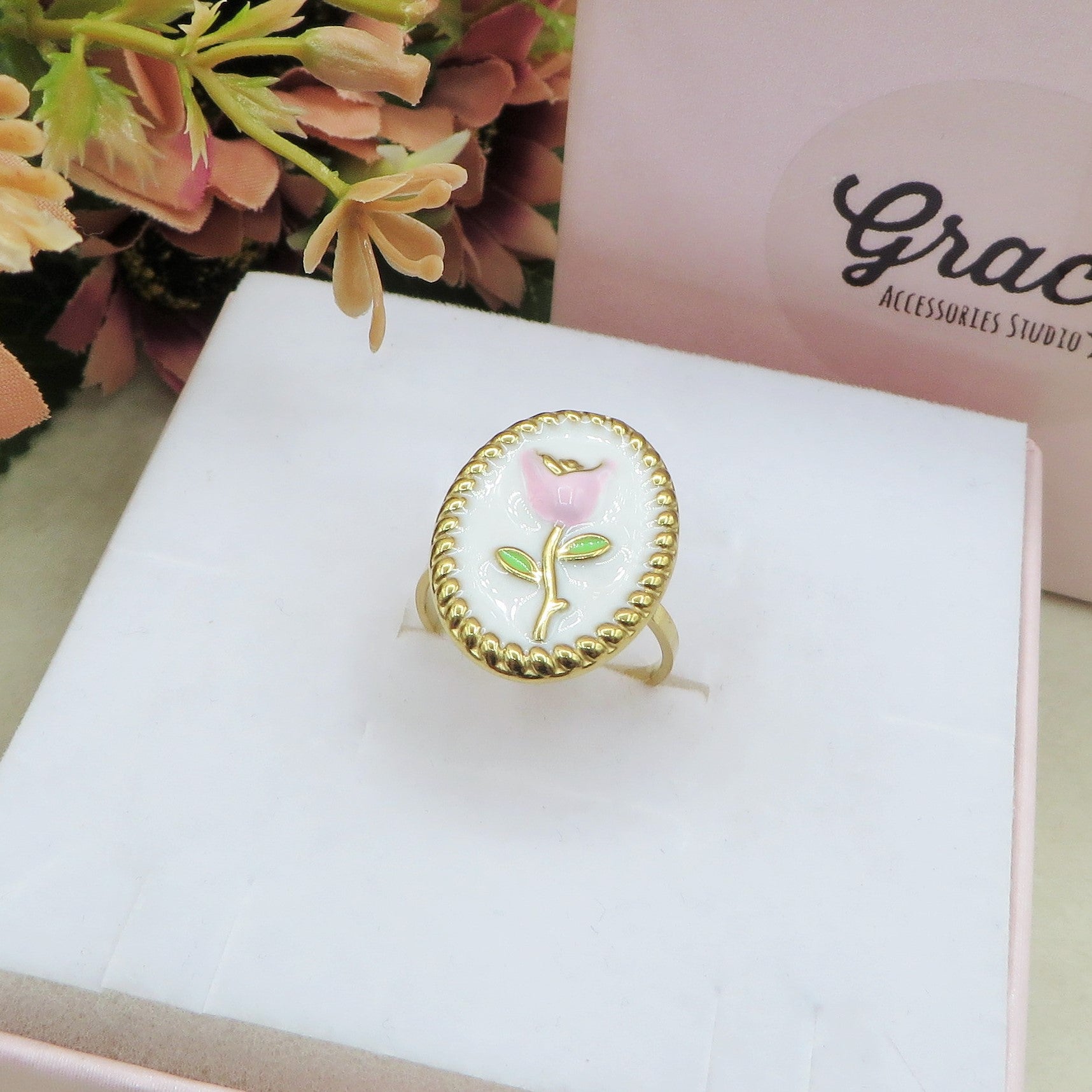 GRACE TULIP 🌷 Anello regolabile con fiori vintage - Acciaio Inossidabile