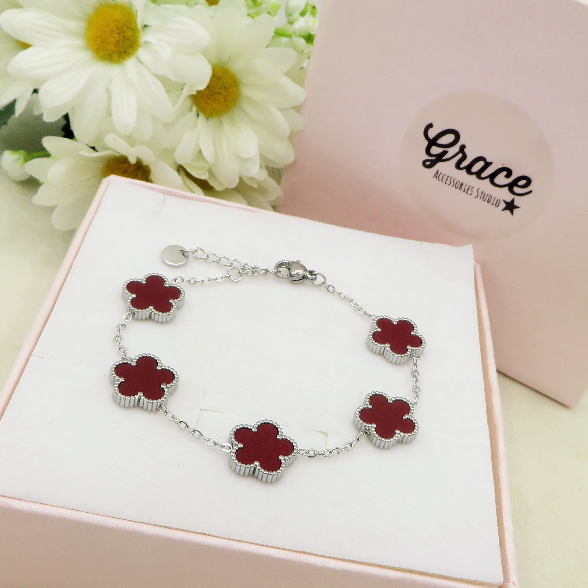 LILY bordeaux MADREPERLA ACCIAIO INOSSIDABILE ~ Bracciale fiori in madreperla