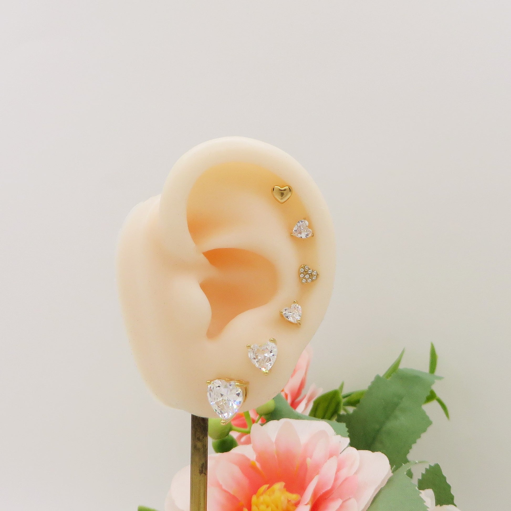 SET 6 PAIA~punti luce cuore acciaio inossidabile ~ 12 PZ ~ Orecchini a lobo con zirconi
