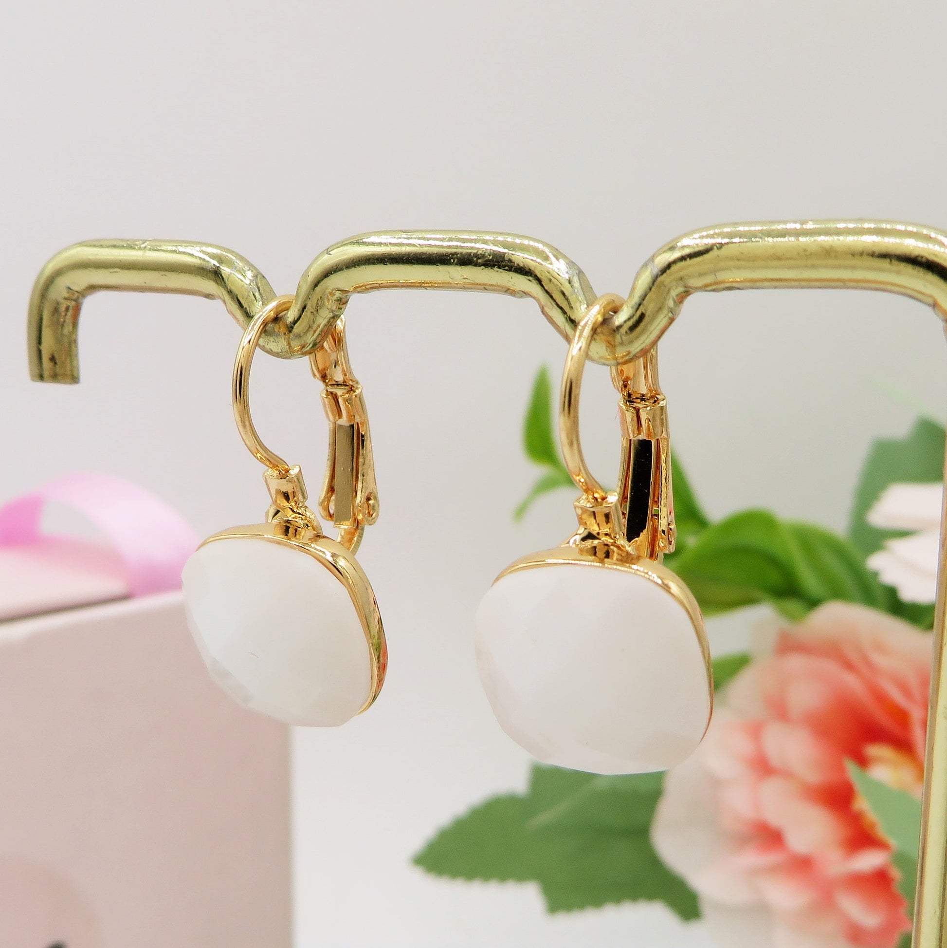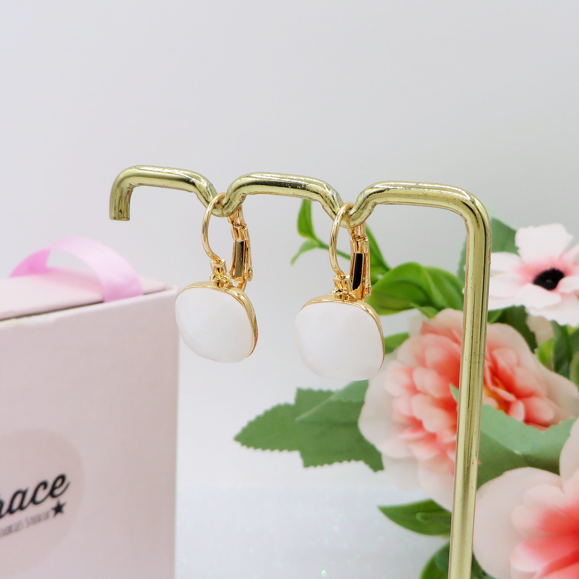SISSY monachella WHITE ~ Orecchini a monachella in ACCIAIO INOSSIDABILE con pietra