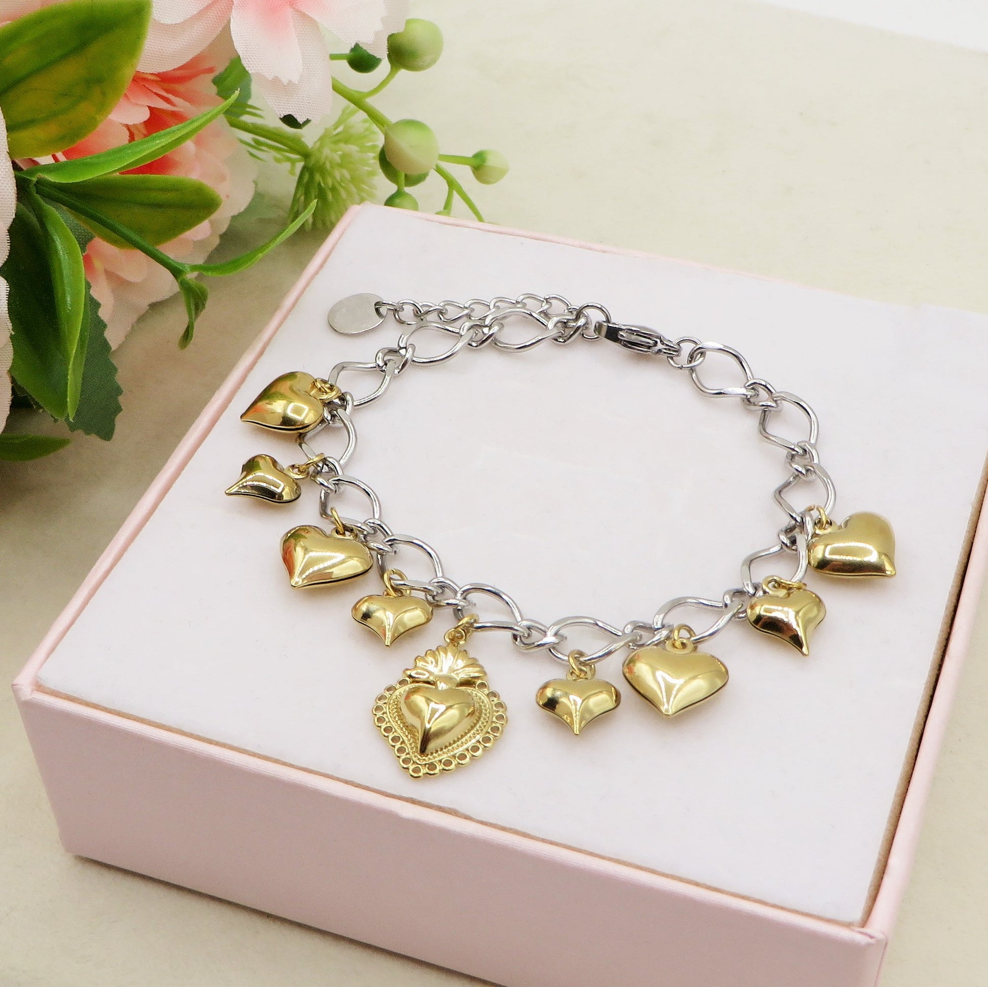 AURELIE SACRED ~ Bracciale ACCIAIO INOSSIDABILE con maxi cuore sacro e cuori bombe' chiama angeli