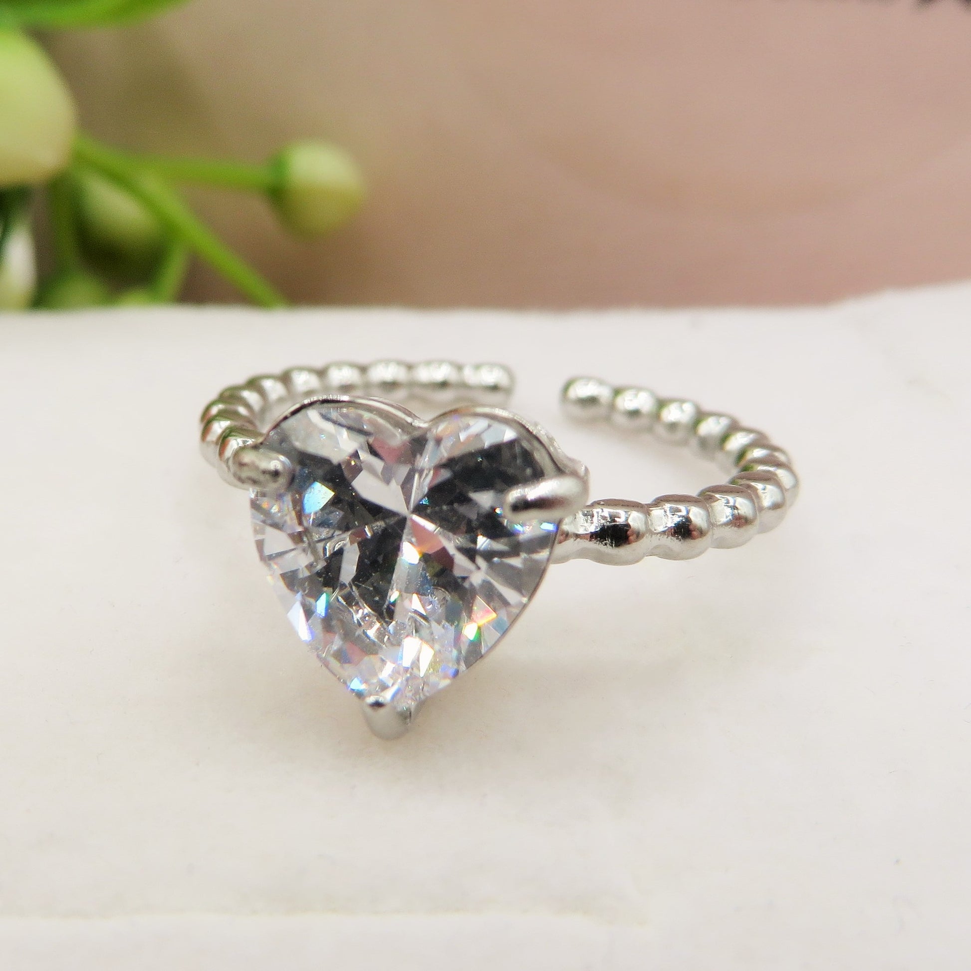 AURORA ~ ARGENTO 925 ~ Anello in ARGENTO 925 con cuore in cubic zirconia regolabile