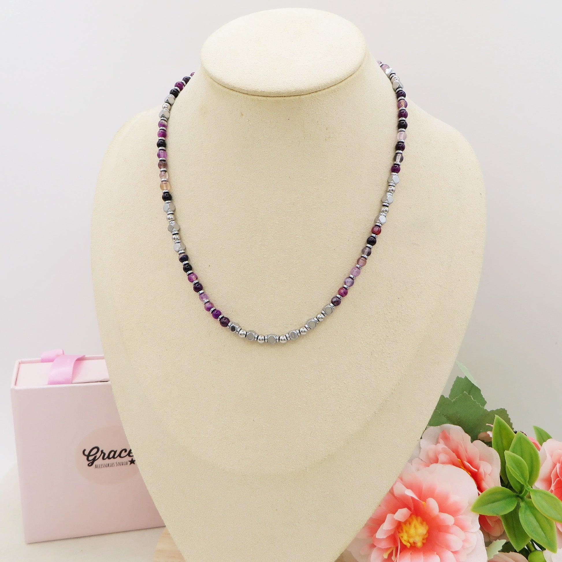 CUBETTI + AMETISTA ~ Collana in ACCIAIO INOSSIDABILE e pietre naturali