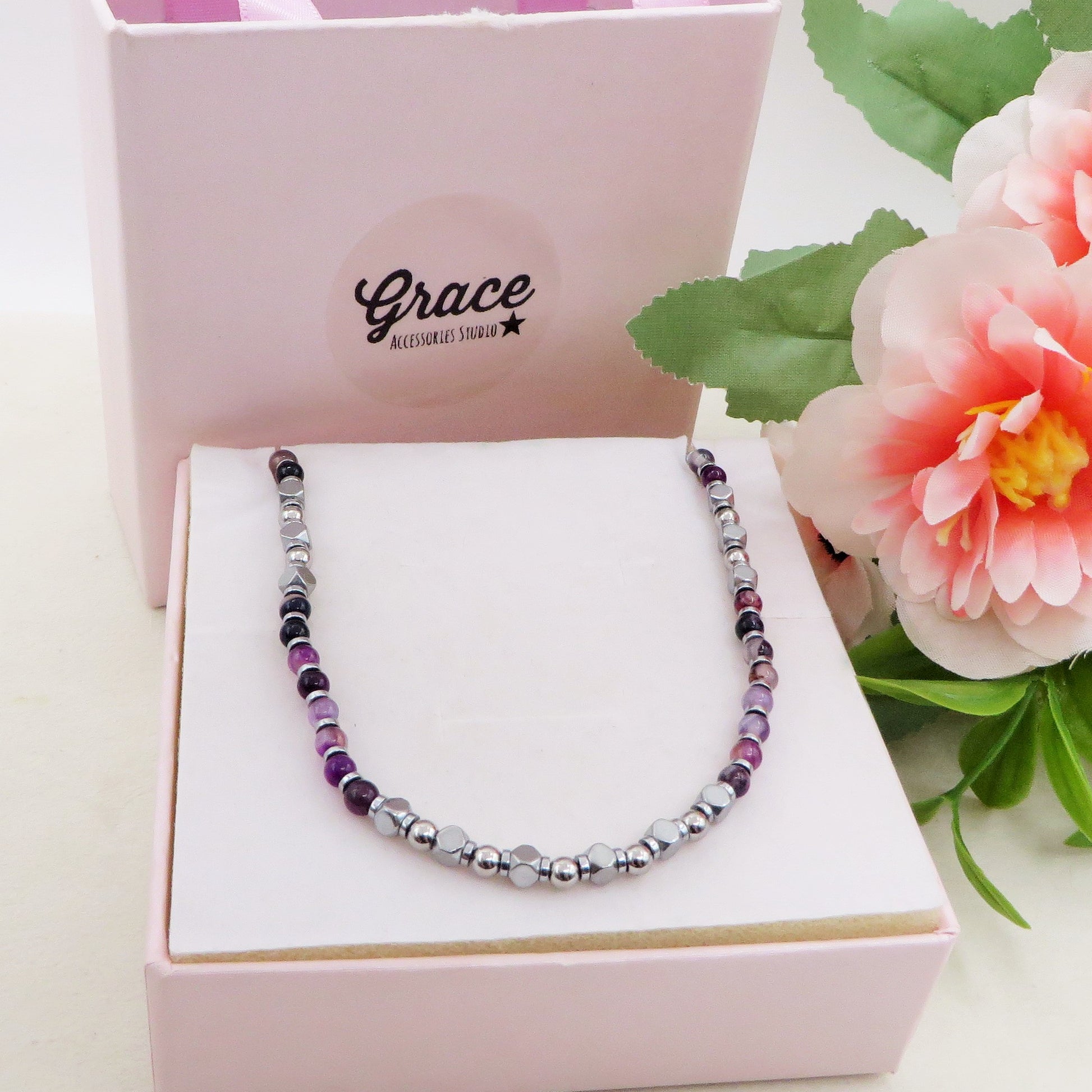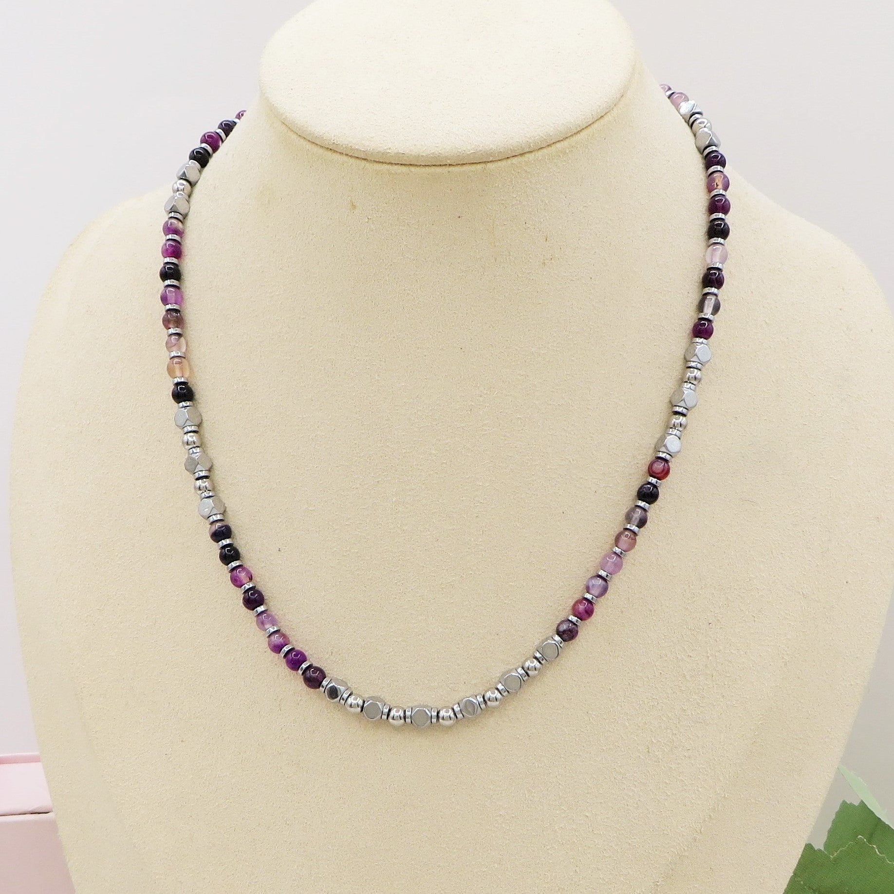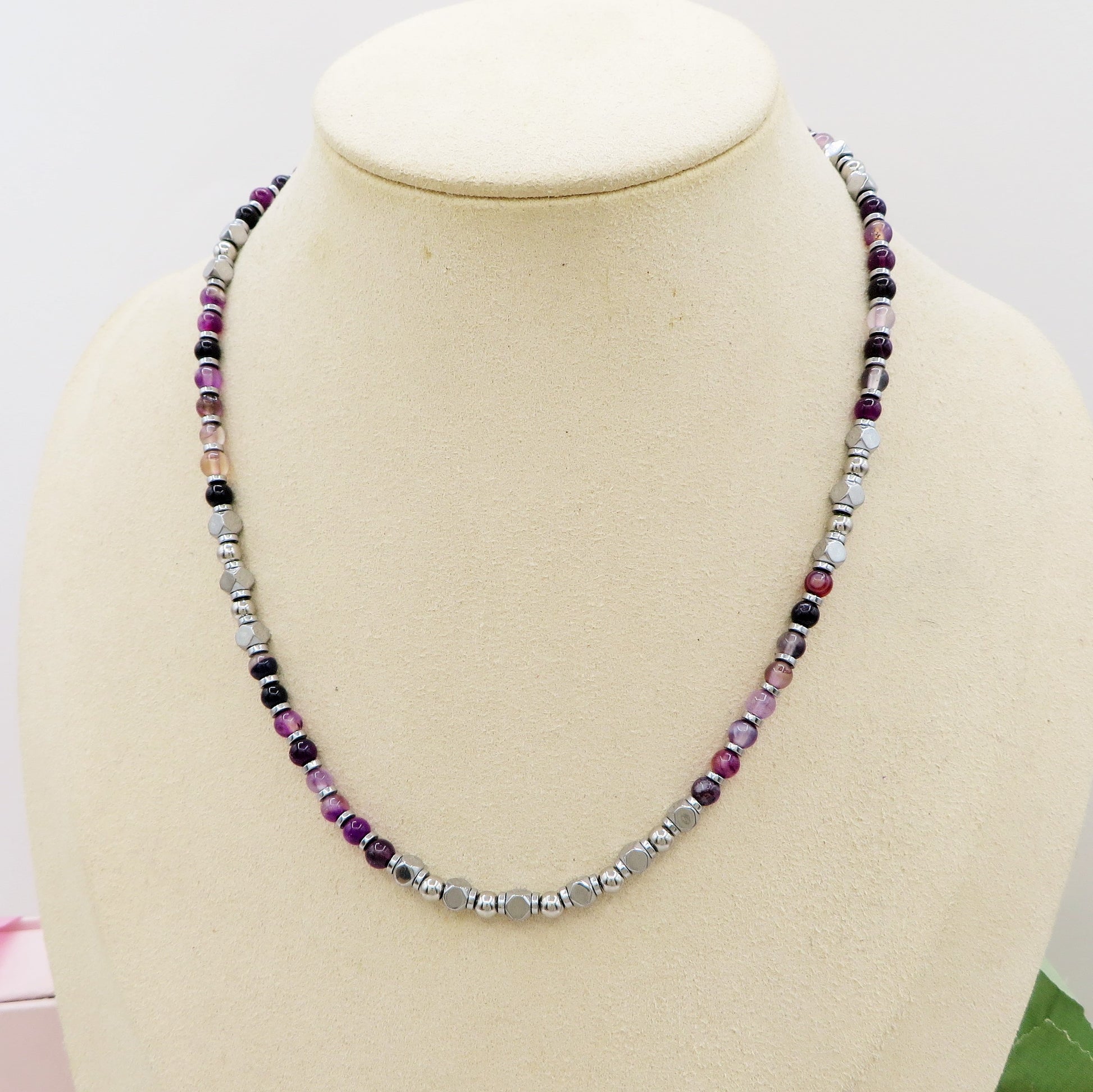 CUBETTI + AMETISTA ~ Collana in ACCIAIO INOSSIDABILE  e pietre naturali