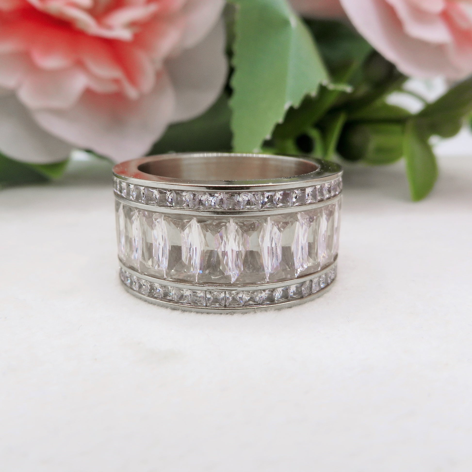 JULIANNE INFINITY - Acciaio Inossidabile ~ Anello fascia con cubic zirconia taglio baguette