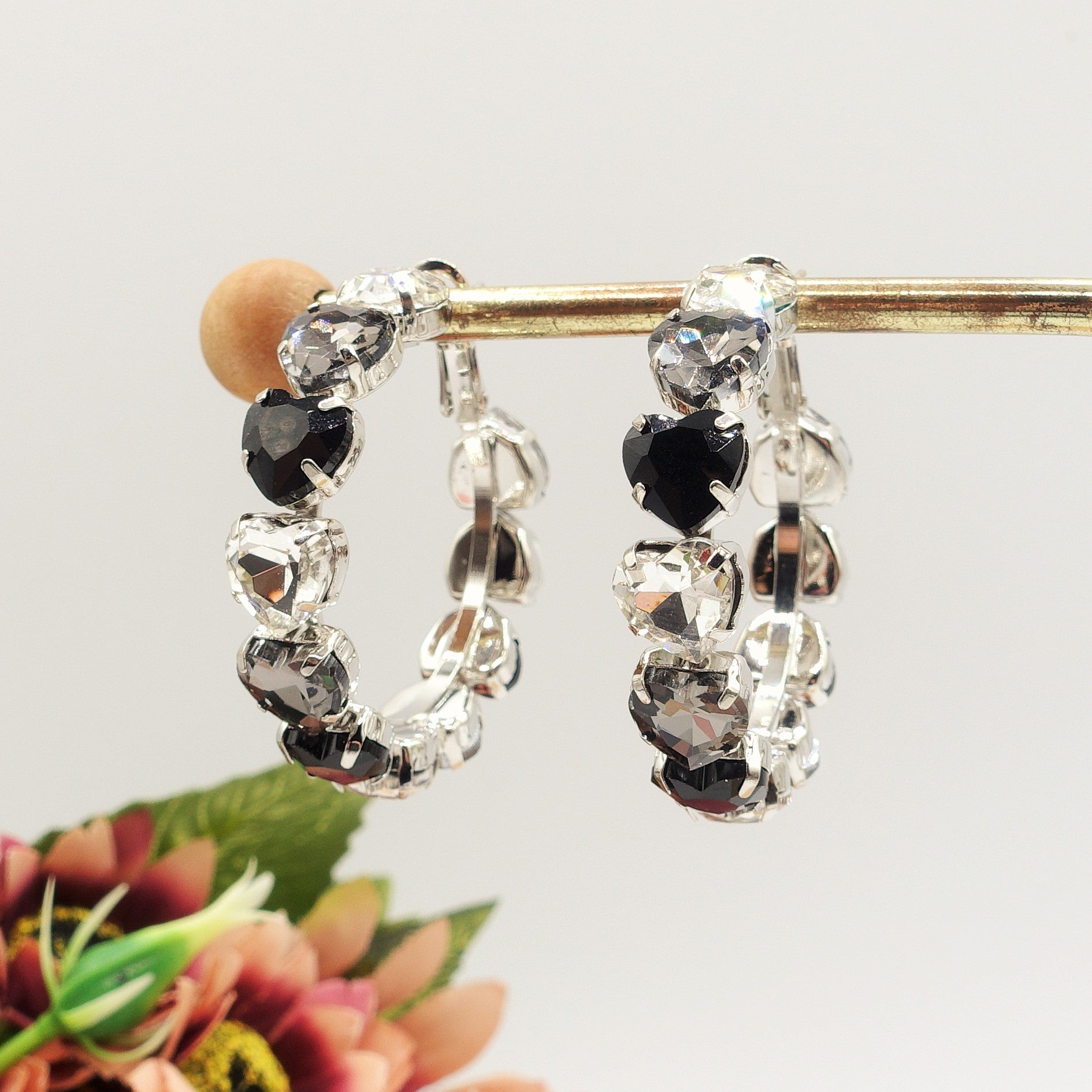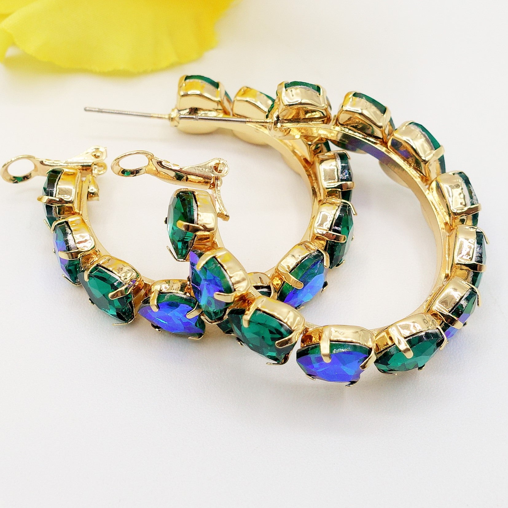 Ottone rodiato + pietre in vetro sfaccettato
