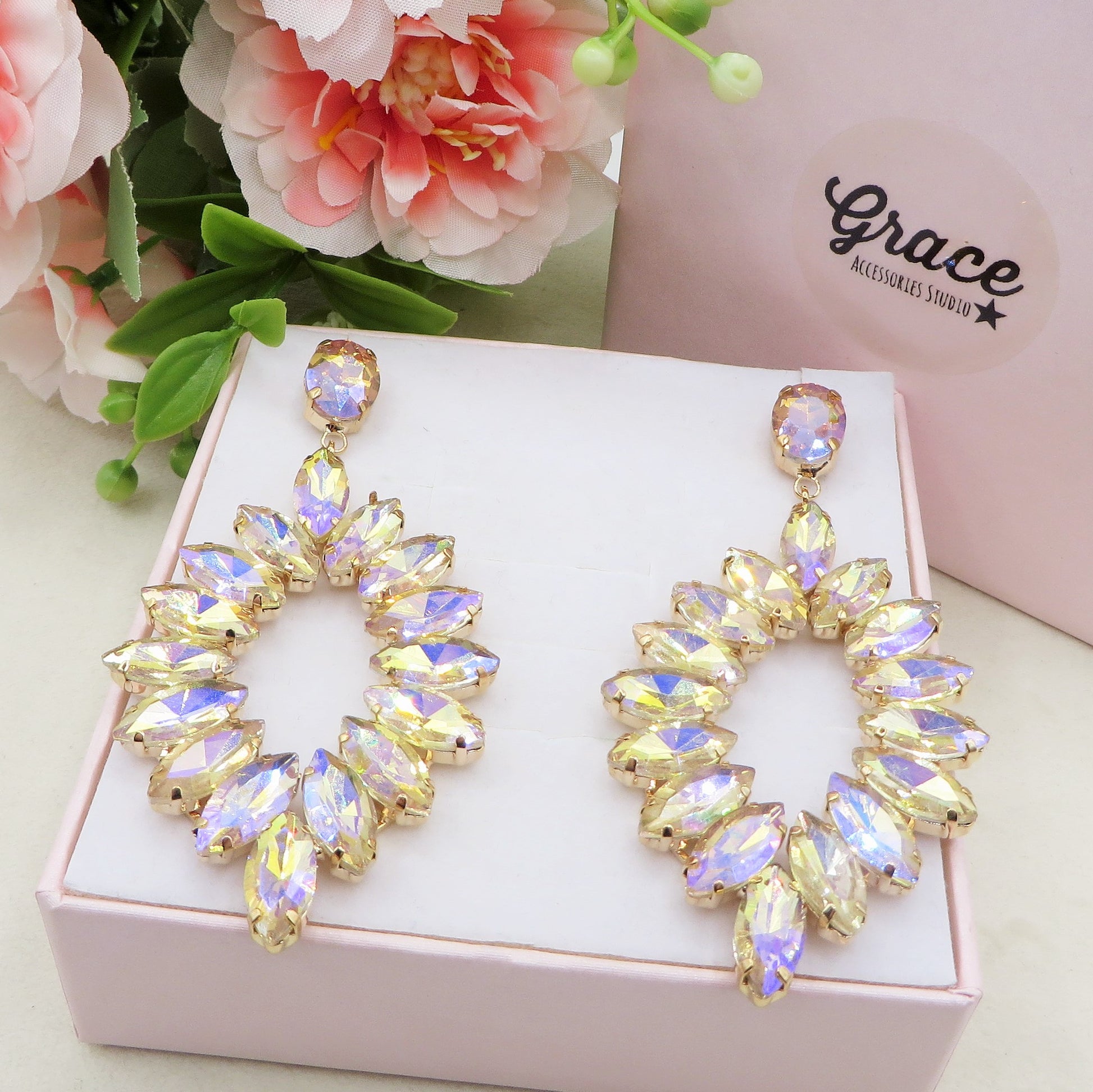 MARIAH - Orecchini retrò pendenti con pietre sfaccettate