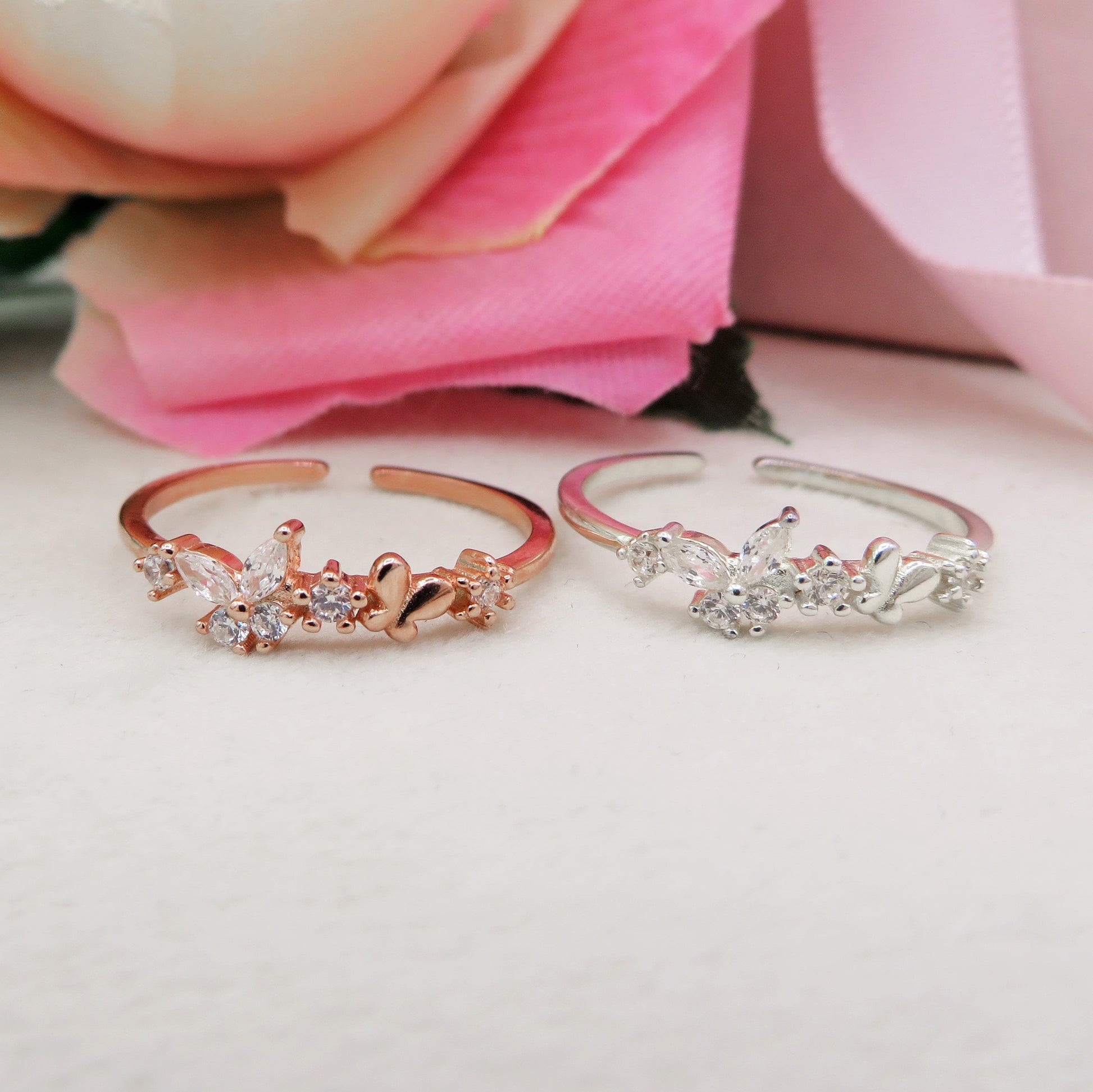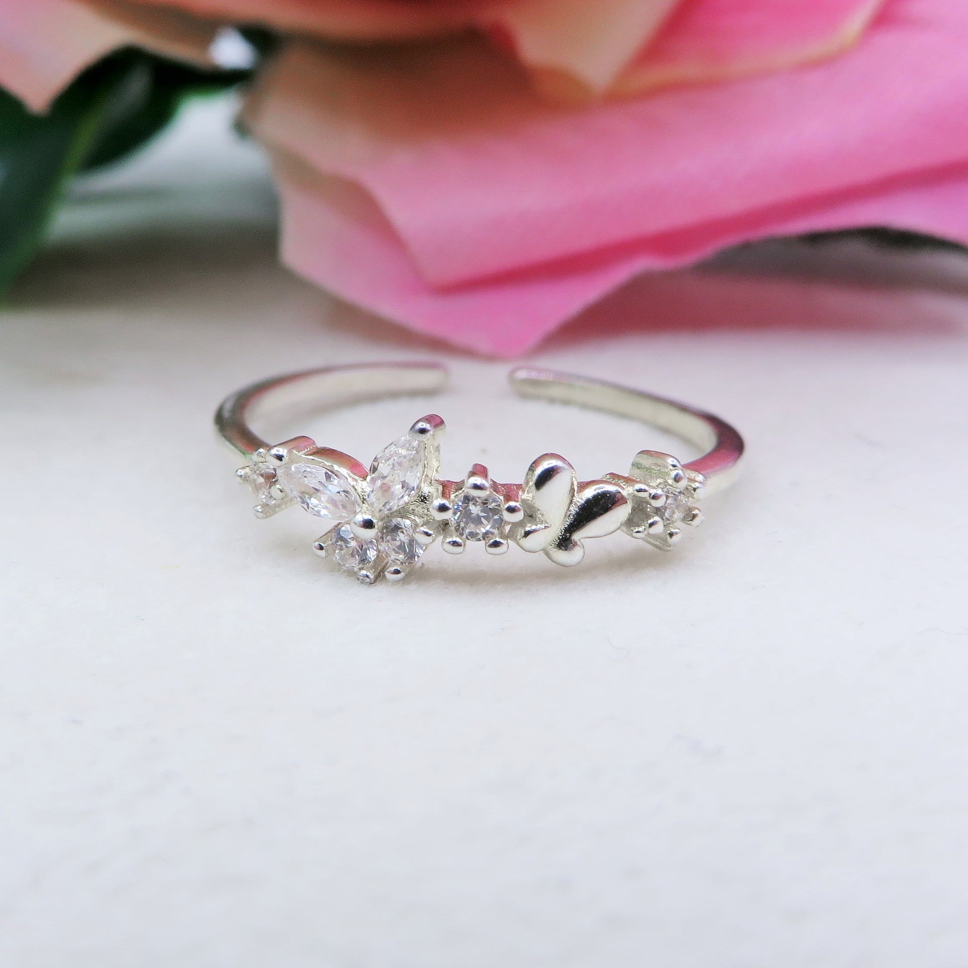 MARIPOSA - ARGENTO 925 ~ Anello regolabile con farfalla in cubic zirconia