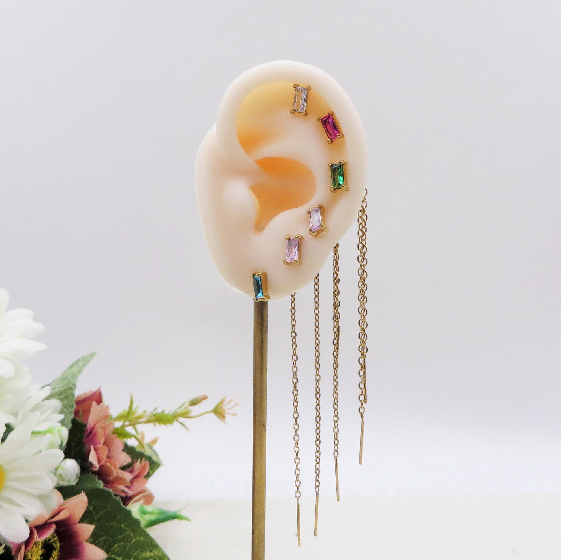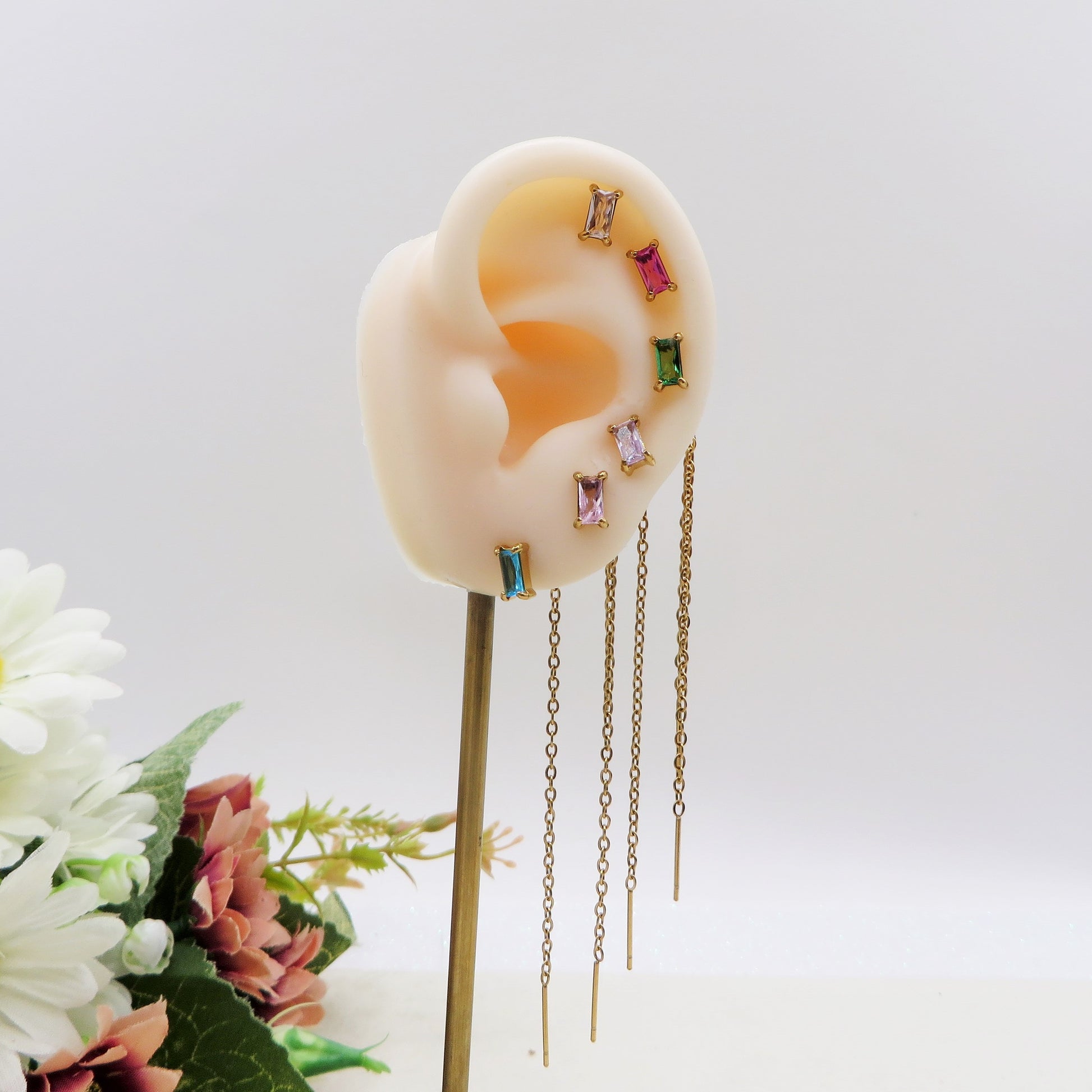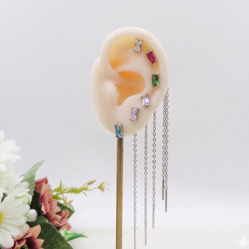 NATALIE Set 6 orecchini - ACCIAIO INOSSIDABILE - 6 Orecchini effetto saliscendi con cubic zirconia a taglio baguette