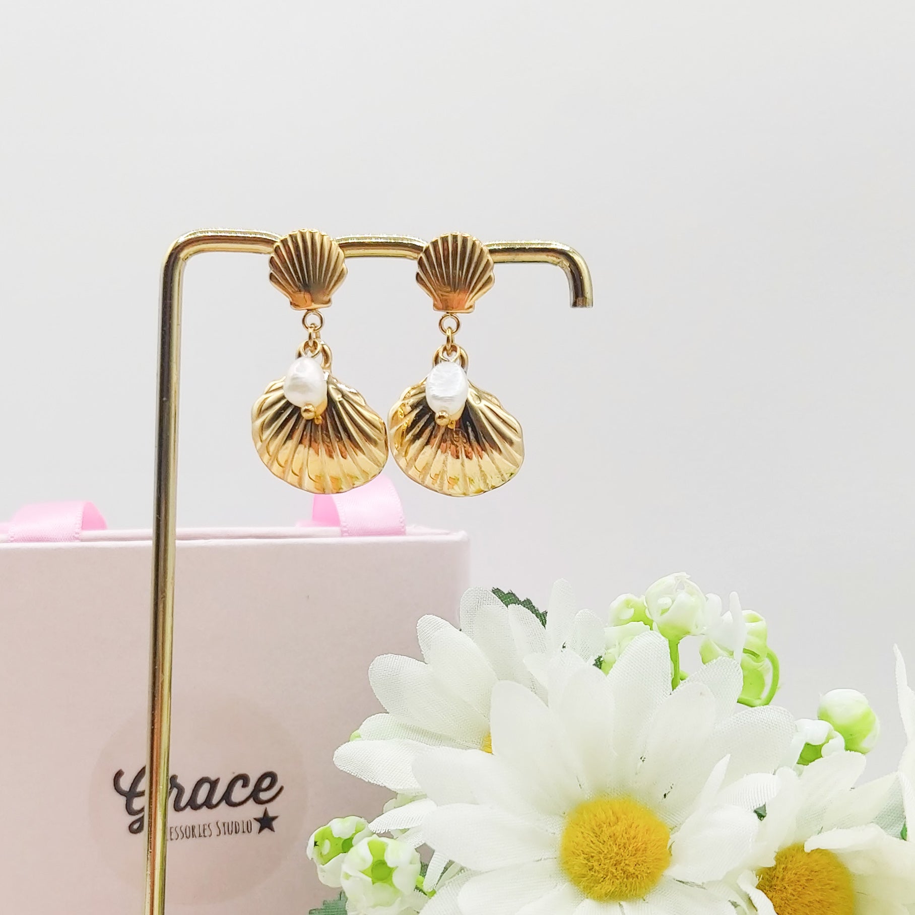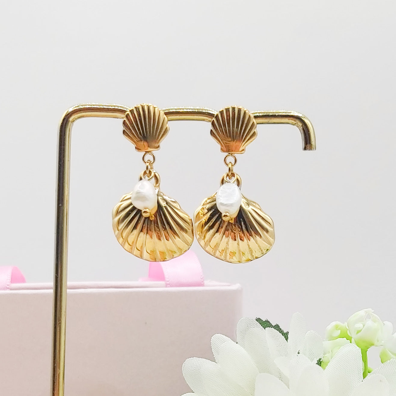 SHELL pendenti - Orecchini pendenti vintage - ACCIAIO INOSSIDABILE ~ Paio Orecchini a conchiglia