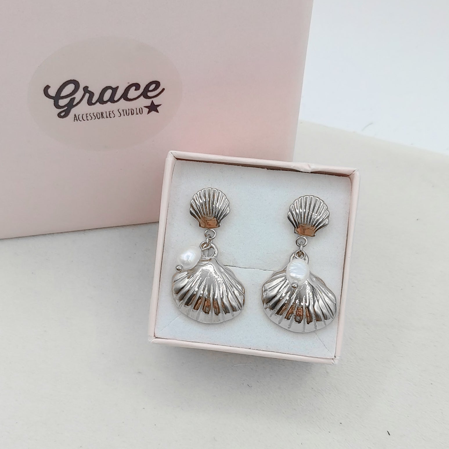 SHELL - Orecchini pendenti vintage - ACCIAIO INOSSIDABILE ~ Paio Orecchini a conchiglia