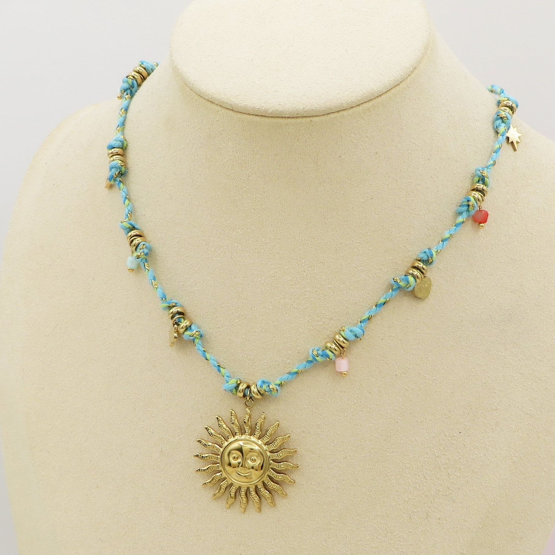 SOLEA COLLANA - ACCIAIO inossidabile - Collana intrecciata con sole e pietre dure